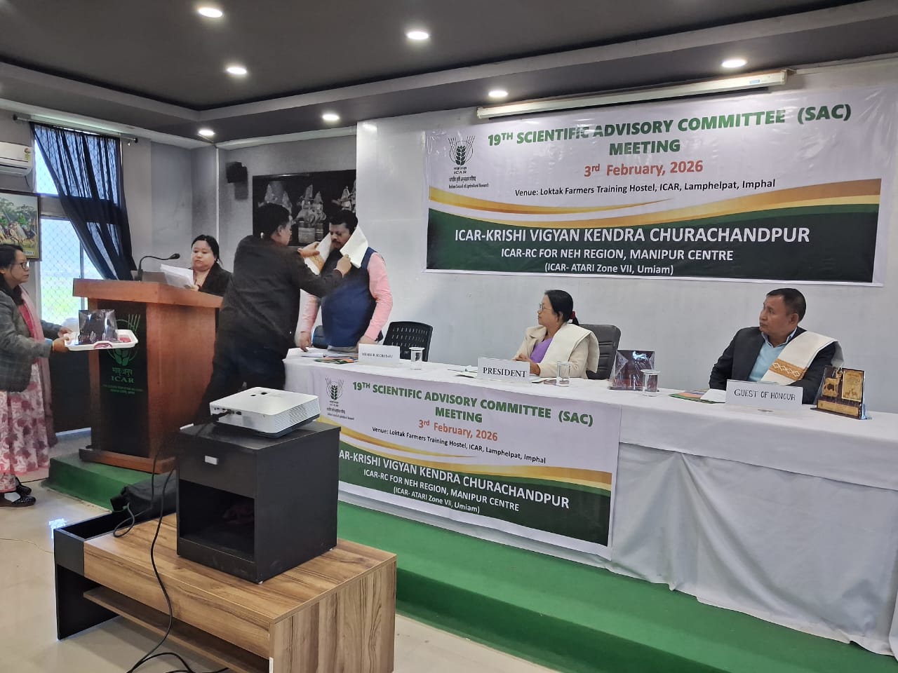 The 19th Scientific Advisory Meeting of ICAR KVK Churachandpur was successfully conducted on 3rd Feb. 2026 at the conference hall of the ICAR RC for NEH Region, Manipur Centre through online and offline mode. The meeting was Chaired by Dr. S. Ghatak, Director, ICAR-RC for NEH Region, Umiam, Meghalaya, Dr. A.K. Singha, Principle Scientist, ICAR-ATARI, Umiam, Meghalaya, Dr. S. Basanta Singh, Principle Scientist and Nodal Officer-ICAR KVKs, ICAR-RC for NEH Region, Umiam, Meghalaya, Dr. Ch Basudha Devi, Head of Regional Centre, ICAR-RC for NEH Region, Manipur Centre, Shri. Kh. Lokendra Singh, Doordarshan Programme Executive & in-charge agriculture programme (as Guest of Honour), DC Churachandpur representative, member from various line department including Dept. of Fisheries, Dept. of Animal Science, Dept. of Agriculture, DDK, AIR, KVIC, CIPMC, MU, KVKs Head, progressive farmers and farmwomen. The meeting started with an overall report presentation for the last year 2025 by Senior Scientist-cum-Head Dr. Manoj Kumar Pandey followed by individual Annual Report 2025 and Action Plan 2026 presentation by respective Subject Matter Specialist- Soil Science (Dr. L. Somendro Singh), Plant Protection (Dr. N. Johnson Singh), Fisheries (Dr. N. Soranganba), Home Science (Dr. S. Roma Devi) and Agroforestry (Bs. Hmannihring Anal). The house accolades the KVK for their excellent work and achievement during the last year and concluded in a fruitful manner with impactful suggestions from all the esteemed members for the upcoming year ahead. Finally, the KVK Churachandpur thanks all the SAC executive members for their diligent, sincere and thought provoking suggestions.